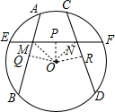 解答 证明:作OP⊥EF于P,OQ⊥AB于Q,OR⊥CD于R,连结OM、ON,如图,则PE=PF,