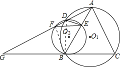 分析:(1)连接BD;若∠G=∠AFE成立,则EF必定和CG平行,那么一定有∠FEB=∠ABC;而在题中∠ABC=∠C,所以必须证明∠FEB=∠C,在这里可以以∠FDB为媒介;因为∠FEB和∠FDB为⊙O