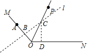 分析 (1)作出线段OA的垂直平分线,再做CD⊥ON即可;