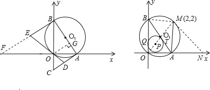 已知:如图,在直角坐标系中,⊙O1经过坐标原点,分别与x轴正半轴、y轴正半轴交于点A、B.