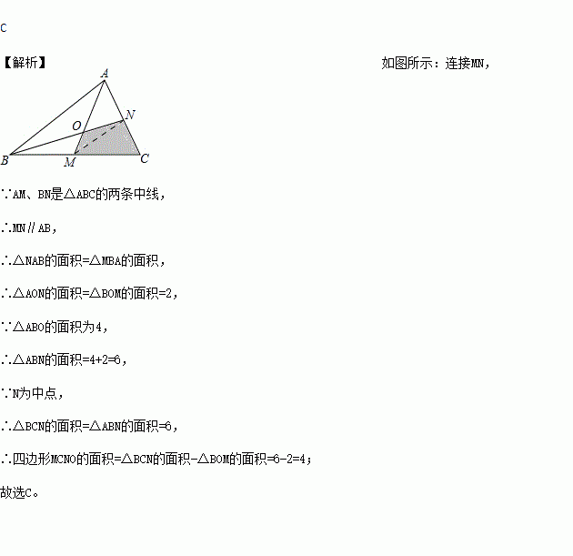 积为4,△BOM的面积为2,则四边形MCNO的面积为( )