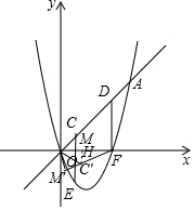 (3)如图,利用条件画出几何图形,再作C′H⊥x轴于H,当m=1时,C(1,1),D(3,3),F(3,0),即F点为抛物线与x轴的一个交点,易得OM=CM=1,OC=$\sqrt{2}$,根据旋转的性质得OM′=C′M′=1,∠OM′C′=∠OMC=90°,再利用勾股定理计算出FM′=2$\sqrt{2}$,则FC′=2$\sqrt{2}$-1,接着证明△FHC′∽△FM′O,利用相似比可计算出FH=$\frac{8-2\sqrt{2}}{3}$,C′H=$\frac{2\sqrt{2}-1}{3}$,所以OH=OF-FH=$\frac{1+2\sqrt{2}}{3}$,于是得到C′点的坐标,然后利用两点间的距离公式可计算出线段C′D的长.
