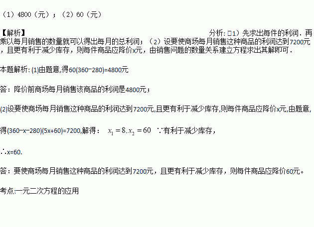 (2)要使商场每月销售这种商品的利润达到7200元,且更有利于减少库存,则每件商品应降价多少元?