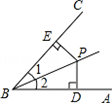 如图,∠1=∠2,PD⊥AB,PE⊥BC,垂足分别为D、E,则下列结论中错误的是