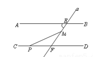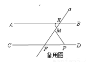 AB∥CD,直线a交AB、CD分别于点E、F,点M在EF上,P是直线CD上的一个动点,(点P不与F重合)