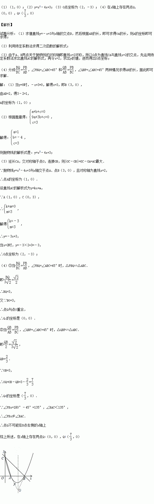 (4)连结AC,请问在x轴上是否存在点Q,使得以点P,B,Q为顶点的三角形与△ABC相似?若存在,请求出点Q的坐标;若不存在,请说明理由.