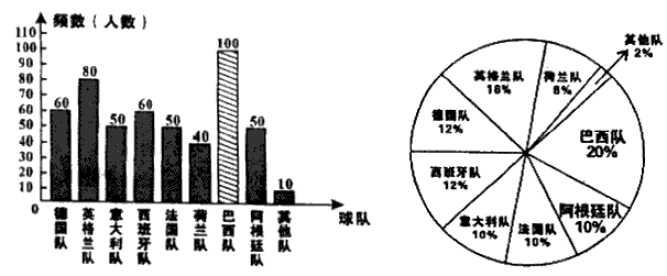 (2)请你在图9-①中补全频数分布直方图,在图9-②中分别把“阿根廷队”和“巴西队”所对应的扇形图表示出来.