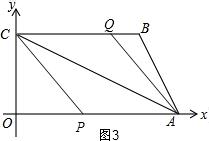 (3)当CQ=AP时,四边形CPAQ为平行四边形,根据图3和图4列式计算求出t的值,并求平行四边形CPAQ的面积.