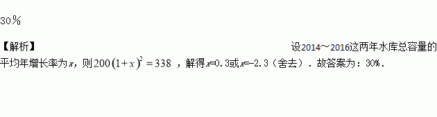 为了有效抗旱,某市大力加强水利设施的建设.2014年底全市水库总容量为200万m3,计划到2016年底全市水库总容量达到338万m3,则2014~2016这两年水库总容量的平均年增长率为______ .