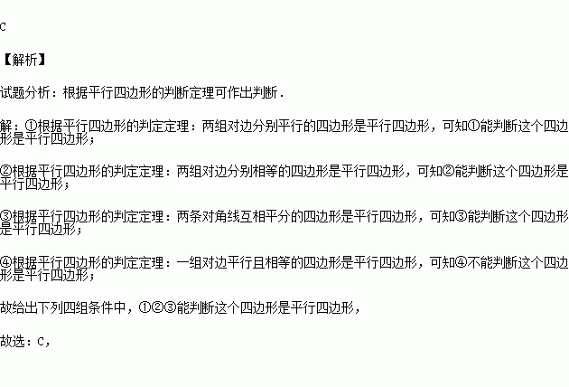 四边形ABCD中,对角线AC、BD相交于点O,给出下列四组条件: