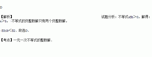 若关于x的不等式x-b>0恰有两个负整数解,则b的取值范围是( )