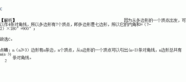 墨墨发现从某多边形的一个顶点出发,可以作4条对角线,则这个多边形的内角和是( )
