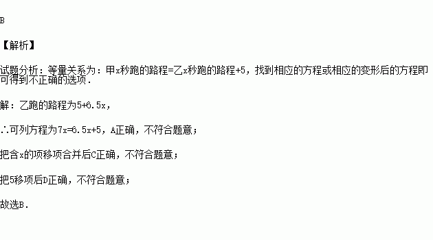 (2015秋•武安市期末)甲、乙两人练习赛跑,甲每秒跑7m,乙每秒跑6.5m,甲让乙先跑5m,设x秒后甲可追上乙,则下列四个方程中不正确的是( )