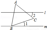 如图,l∥m,等边△ABC的顶点B在直线m上,∠1=20°,则∠2的度数为( )