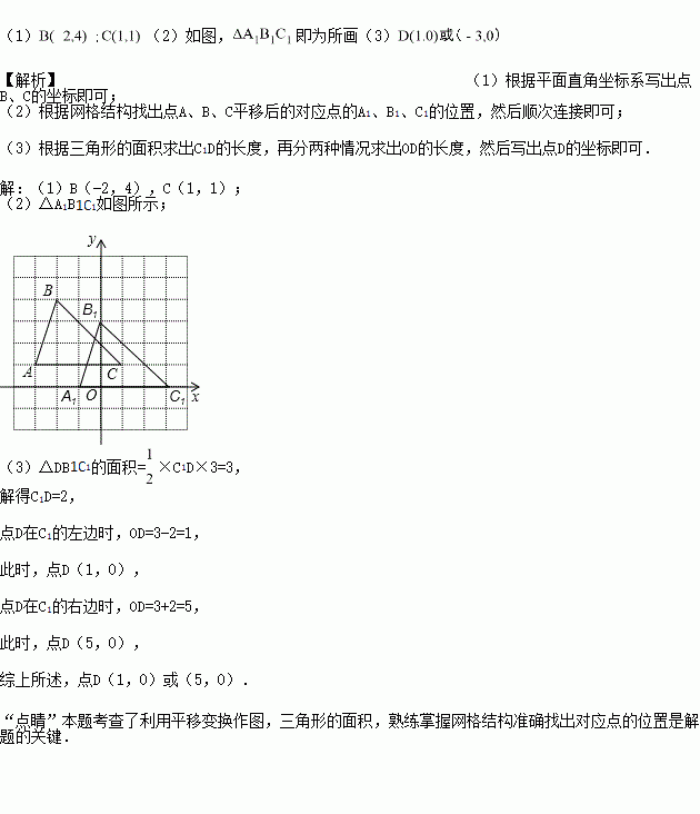 △ABC在方格中,位置如图所示,A点的坐标为(-3,1).