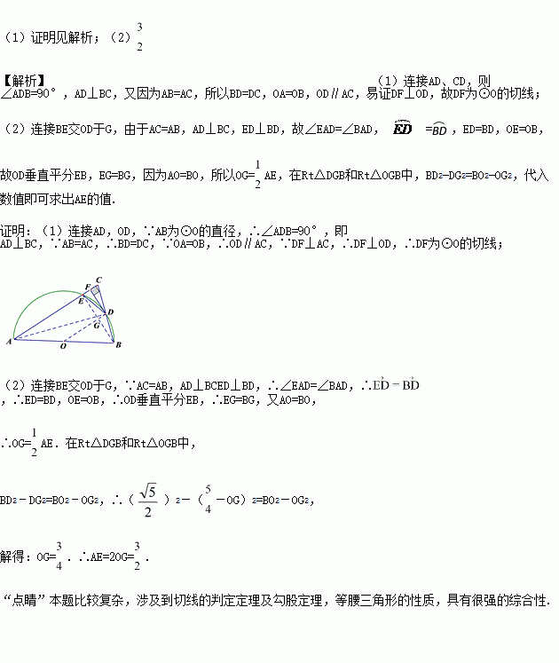 如图,已知在△ABC中,AB=AC,以AB为直径的半圆O与边BC交于点D,与边AC交于点E,过点D作DF⊥AC于F.