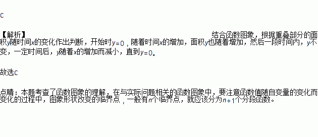 如图,两个大小不同的正方形在同一水平线上,小正方形从图①的位置开始,匀速向右平移,到图③的位置停止运动.如果设运动时间为x,两个正方形重叠部分的面积为y,则下列图象中,能表示y与x的函数关系的图象大致是( )
