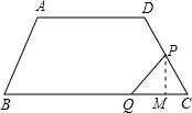 (2)当PQ∥AB时,易证△PQC是等腰三角形,过P作PM⊥QC于M.由等腰三角形三线合一的性质,可知QM=MC.如果设P点离开D点的时间等于t秒,则可用含t的代数式分别表示DP,PC,CQ,在直角△PMC中,根据PM=PCsinC=CMtanC,列出关于t的方程,即可求出结果;