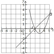 分析 (1)把A(2,m)、B(n,3)分别代入y1=x-2中解得m=0,n=5,所以求得A(2,0)、B(5,3),将A、B的坐标代入y2=ax2+bx+c,由抛物线的对称轴为直线x=3得出-$\frac{b}{2a}$=3,列出关于a、b、c的三元一次方程组,进而求出二次函数解析式;