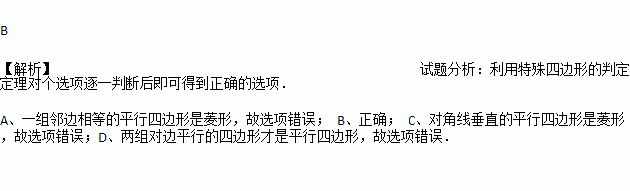 C. 对角线垂直的平行四边形是正方形 D. 一组对边平行的四边形是平行四边形