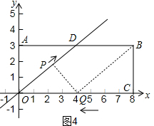 分析 (1)由直线y=$\frac{3}{4}$x交AB于点D,矩形OABC的顶点A坐标为(0,3),把y=4代入y=$\frac{3}{4}$x得,解得x=4,即可求出点D的坐标