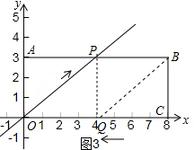 ∴$\frac{PQ}{BC}$=$\frac{OQ}{CQ}$,即$\frac{\frac{3}{4}(8-t)}{3}$=$\frac{8-t}{t}$,解得t=4