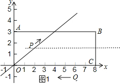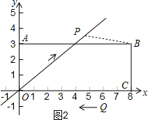 或$\frac{PQ}{CQ}$=$\frac{OQ}{BC}$即$\frac{\frac{3}{4}(8-t)}{t}$=$\frac{8-t}{3}$,解得t=$\frac{9}{4}$,