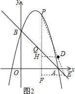(3)d=-(t-2)2+4,当t=2时,d有最大值,此时P点坐标为(2,6),如图2,作DH⊥PQ于H,EF⊥PQ于H,![]()