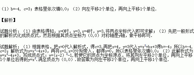 (2)将抛物线y=x2+bx+c做怎样的平移,使它的顶点为坐标原点?