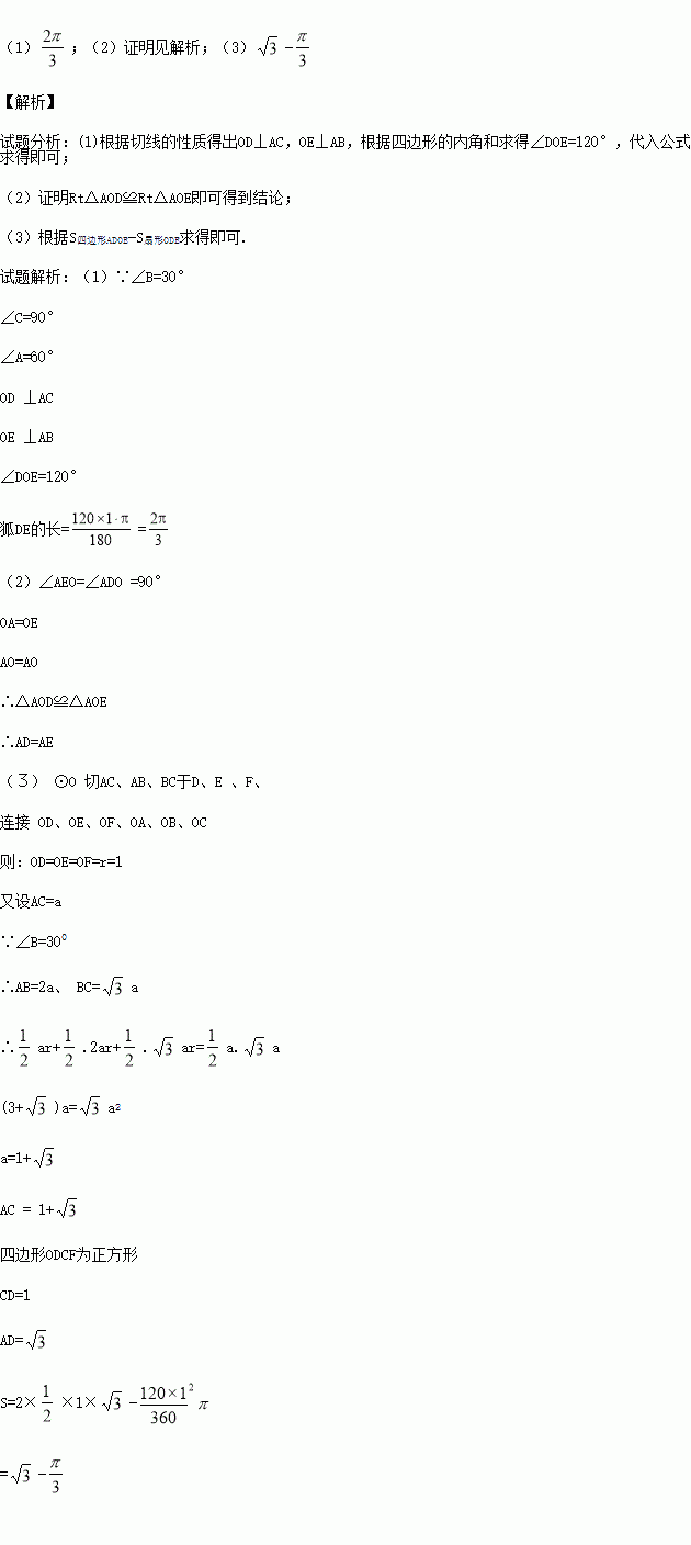 如图,⊙O为R△ABC的内切圆,⊙O的半径r=1,∠B=30°,