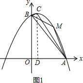 (3)过点M作MN⊥OA于N,设点M的坐标为[a,-$\frac{1}{2}$(a-1)2+$\frac{9}{2}$],根据M位于笫一象限,得出S△ABM=S梯形BONM+S△ANM-S△AOB,再把相关的数据代入计算即可得出答案.