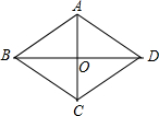 在菱形ABCD中,对角线AC、BD交于点O,AC、BD的长分别为6厘米、8厘米,则菱形ABCD的面积为