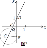 £¨2£©¶ÔÓÚ¡ÑCµÄÈÎÒâÒ»¸ö¡°ÍêÃÀµã¡±P¶¼ÓÐ|PA-PB|=2£¬ÍƳö|CP+2-£¨2-CP£©|=2£®¿ÉµÃCP=1£®ÍƳö¶ÔÓÚÈÎÒâµÄµãP£¬Âú×ãCP=1£¬¶¼ÓÐ|CP+2-£¨2-CP£©|=2£¬ÍƳöÂú×ã|PA-PB|=2£¬¹Ê´ËʱµãPΪ¡ÑCµÄ¡°ÍêÃÀµã¡±£®Òò´Ë£¬¡ÑCµÄ¡°ÍêÃÀµã¡±ÊÇÒÔµãCΪԲÐÄ£¬1Ϊ°ë¾¶µÄÔ²£®Èçͼ2ÖУ¬ÉèÖ±Ïßy=$\sqrt{3}$x+1ÓëyÖá½»ÓÚµãD£¬µ±¡ÑCÒÆ¶¯µ½ÓëyÖáÏàÇÐÇÒÇеãÔÚµãDµÄÏ·½Ê±£¬tµÄÖµ×îС£®ÉèÇеãΪE£¬Á¬½ÓCE£¬ÓÉ¡÷DOF¡×¡÷DEC£¬¿ÉµÃ$\frac{OD}{DE}$=$\frac{OF}{CE}$£¬ÍƳöDE=$\sqrt{3}$£¬tµÄ×îСֵΪ1-$\sqrt{3}$£®£¬ÔÙ¸ù¾Ý¶Ô³ÆÐԿɵÃtµÄ×î´óÖµ£¬Óɴ˼´¿É½â¾öÎÊÌ⣻