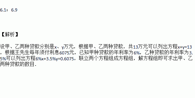 蔬菜种植专业户王先生要办一个小型蔬菜加工厂,分别向银行申请甲、乙两种贷款,共13万元,王先生每年须付利息6075元,已知甲种贷款的年利率为6%,乙种贷款的年利率为3.5%,则甲、乙两种贷款分别是______万元和______万元.