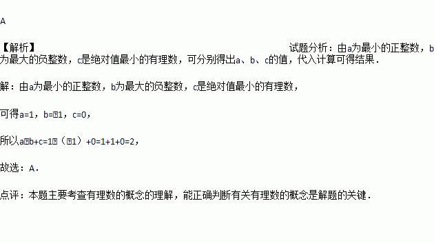 设a为最小的正整数,b为最大的负整数,c是绝对值最小的有理数,则a﹣b+c的值为( )