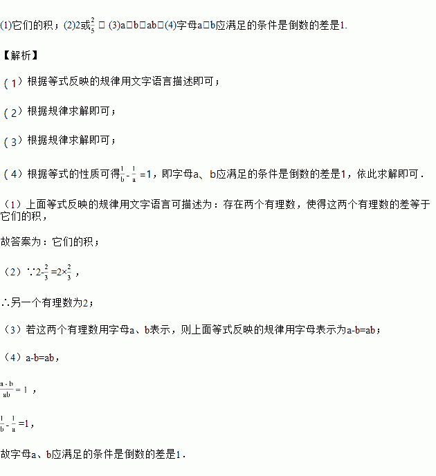 (1)上面等式反映的规律用文字语言可以描述如下:存在两个有理数,使得这两个有理数的差等于