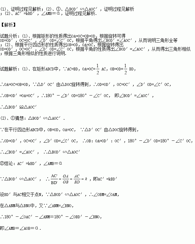 (1)、当四边形ABCD为矩形时,如图1.求证:△AOC′≌△BOD′.