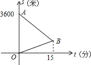 分析 (1)从图象可以看出,父子俩从出发到相遇花费了15分钟,路程是3600米,可以求出父子俩的速度,B点的纵坐标便可以求出,利用待定系数法便可以求出AB的解析式;