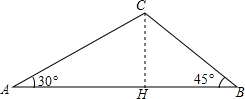 分析 作CH⊥AB于H,如图,设CH=x,在Rt△ACH中利用含30度的直角三角形三边的关系得AH=$\sqrt{3}$CH=$\sqrt{3}$x,在Rt△CBH中,根据等腰直角三角形的性质得BH=CH=x,则AB=BH+AH=x+$\sqrt{3}$x,原式可得到方程$\sqrt{3}$x+x=12+12$\sqrt{3}$,解方程得到x=12,然后根据三角形面积公式求解.