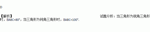 A. 80° B. 160° C. 100° D. 80°或100°