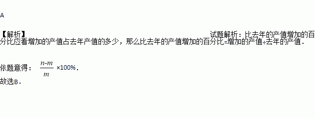 某厂去年产值为m万元,今年产值是n万元(m<n),则今年的产值比去年的产值增加的百分比是 ( )