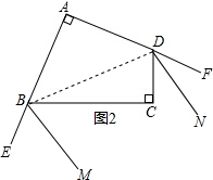 (2)连接BD,易证∠FDC+∠EBC=180゜,则可得∠NDC+∠CBM=90゜,继而可证得∠NDC+∠CDB+∠CBD+∠MBC=180゜,则可得BM∥DN.
