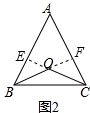 (2)证明:如图2,过点O作OE、OF分别与AB、AC垂直于点E、F,