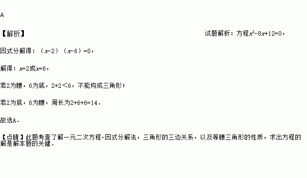 已知一元二次方程x2﹣8x+12=0的两个解恰好是等腰△ABC的底边长和腰长,则△ABC的周长为( )
