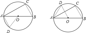 分析:连接AD,OD,BC,先证明△OAD是等边三角形,利用AB是圆O的直径求得∠C=90°,利用直角三角形中的三角函数可求得∠CAB=30°,点D的位置有两种情况:①当点D在AB的下方的圆弧上,②当点D在AB的上方的圆弧上,分别计算即可.
