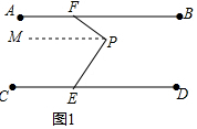 分析 (1)过P作PM∥AB,根据平行线的性质得到∠BFP=∠FPM,等量代换得到∠MPE=∠PED,根据平行线的判定定理即可得到结论;