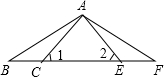 已知命题:如图,点B、C、E、F在同一直线上,若AB=AF,∠1=∠2,则△ABE≌△AFC.