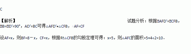 如图,在矩形ABCD中,AB=8,BC=4,将矩形沿AC折叠,点D落在点D′处,则重叠部分△AFC的面积为( )