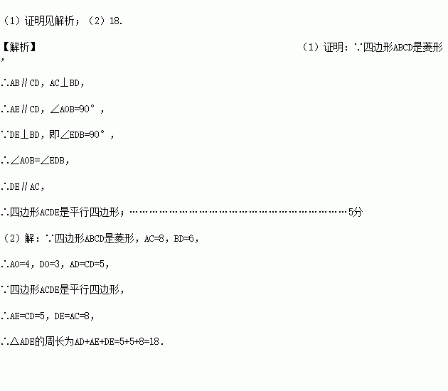 (2)若AC=8,BD=6,求△ADE的周长.