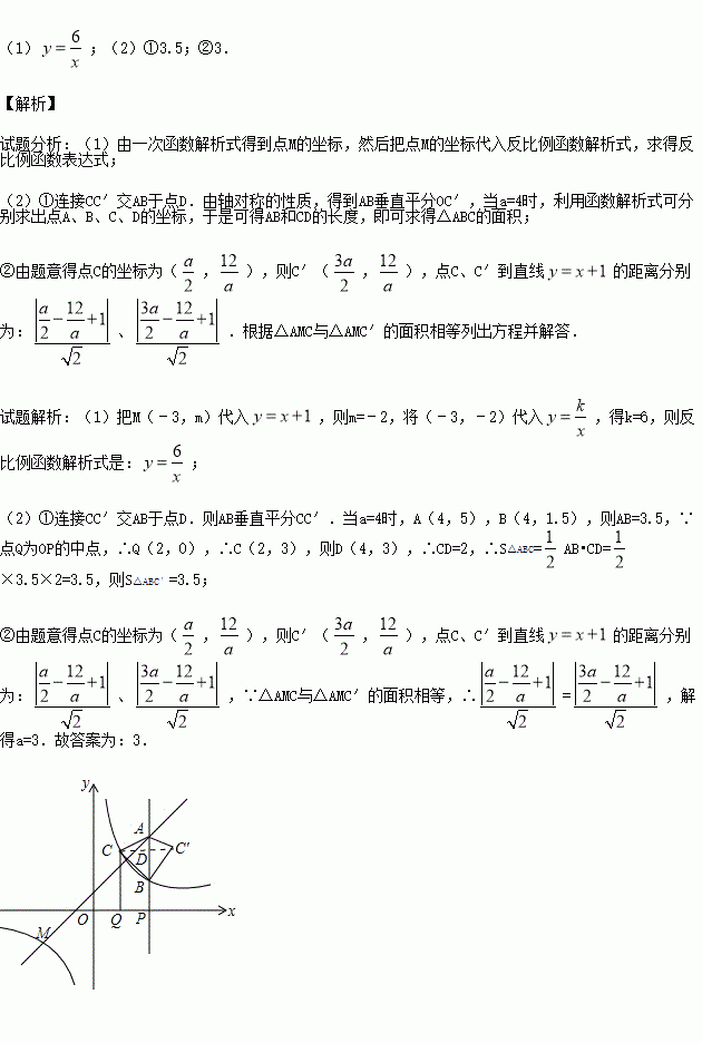 (2)点P是x轴正半轴上的一个动点,设OP=a(a≠2),过点P作垂直于x轴的直线,分别交一次函数,反比例函数的图象于点A,B,过OP的中点Q作x轴的垂线,交反比例函数的图象于点C,△ABC′与△ABC关于直线AB对称.